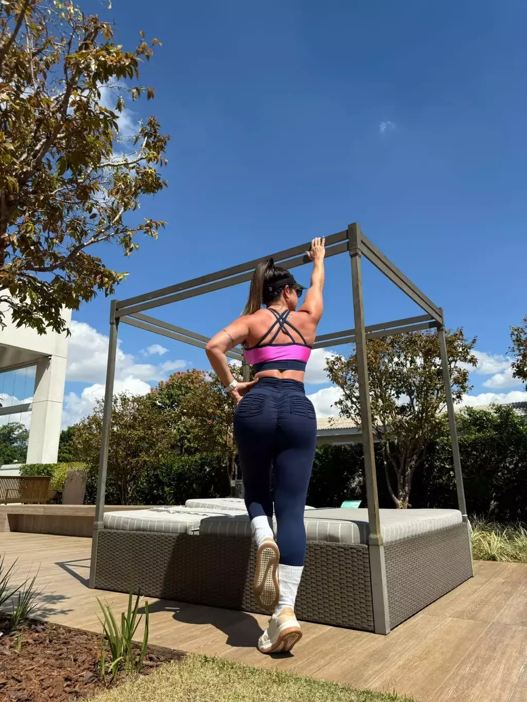 Conjunto Yas Elegance Empina em poliamida premium com legging modelo empina e cós reto e top com bojo removível, perfeito para dias mais quentes.Cheio de estilo, esse conjunto possui um material super leve, ideal para prática de atividades físicas, proporcionando uma ALTA COMPRESSÃO, deixando a peça ainda mais confortável. Ele também é ideal para treinos ao ar livre pois possui PROTEÇÃO UV 50+.